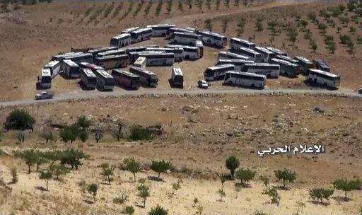 Hezbollah's Al-Manar TV station said buses were still trickling in to Lebanon to pick up the 9,000 Syrians seeking to relocate. It said some 200 buses will be in the caravan that transports the Syrians to Idlib.