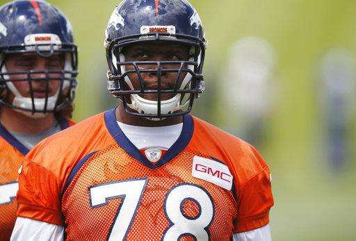FILE - In this May 27, 2015, file photo, Denver Broncos offensive tackle Ryan Clady waits to take part in drills during an NFL football organized team activity at the team's headquarters in Englewood, Colo. Clady announced on Tuesday, Aug. 1, 2017, that he will retire from the NFL after nine seasons in the trenches. (AP Photo/David Zalubowski, File) The Associated Press