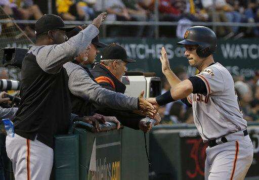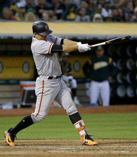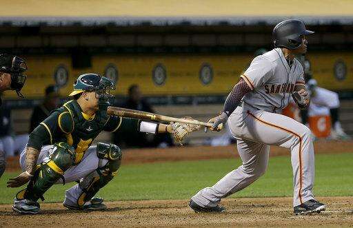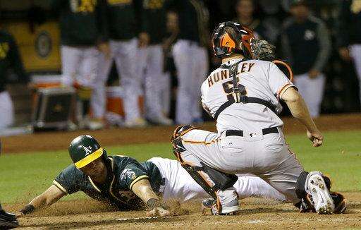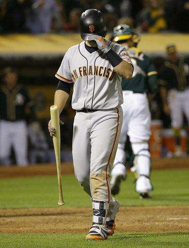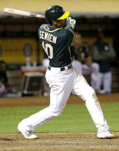 OAKLAND, Calif. (AP) - Marcus Semien's big swing ended a hectic and roster-changing day for the Athletics and sent the San Francisco Giants tumbling deeper into their season-long abyss.