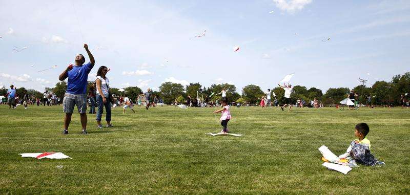 Tiffany Michalak of Wood Dale and her daughter Hadlee, 2, were among several hundred people who participated in the Elmhurst Park District's annual Kite Fest Saturday at Berens Park. Daniel White/dwhite@dailyherald.com