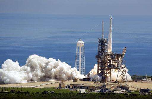 A Falcon 9 SpaceX rocket launches from pad 39A at the Kennedy Space Center in Cape Canaveral, Fla., Monday, Aug. 14, 2017. The mission of the spacecraft is a cargo and supply delivery to the International Space Station. (AP Photo/John Raoux) The Associated Press