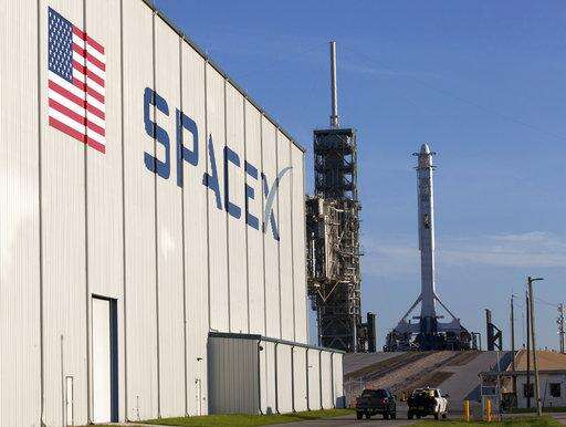 In this photo provided by NASA, a SpaceX Falcon 9 rocket and Dragon spacecraft await liftoff from NASA Kennedy Space Center’s Launch Complex 39A in Cape Canaveral, Fla., on Monday, Aug. 14, 2017. SpaceX is about to launch a few tons of research to the International Space Station - plus ice cream. (Kim Shiflett/NASA via AP) The Associated Press