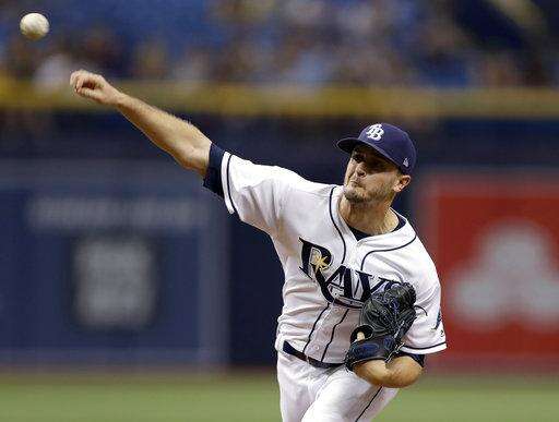Tampa Bay Rays starting pitcher Jake Odorizzi delivers to the Seattle Mariners during the first inning of a baseball game Saturday, Aug. 19, 2017, in St. Petersburg, Fla. (AP Photo/Chris O'Meara) The Associated Press