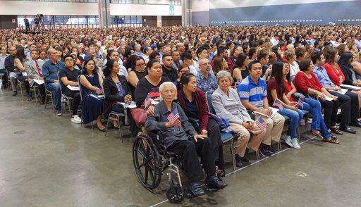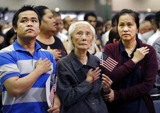 Hong Inh was the oldest of more than 10,000 people who took the oath of allegiance in a cavernous room at the downtown Convention Center in Los Angeles.