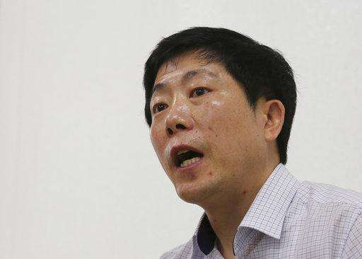In this Aug. 18, 2017 photo, Park Sang Hak, a refugee from the North who now runs the group Fighters for a Free North Korea from a small Seoul office, speaks during an interview in Seoul, South Korea. In South Korea, political activists send thousands of leaflets, DVDs and flash drives every year across the border into North Korea, mostly by balloon, hoping to bring to the isolated country. Park sends tens of thousands of plastic fliers across the border every year. Fearing retaliation by Pyongyang, he goes nowhere without police bodyguards. “People are already wondering about their lives there,” he said, with the spread of outside information letting them know that life is easier in China and South Korea. (AP Photo/Ahn Young-joon) The Associated Press