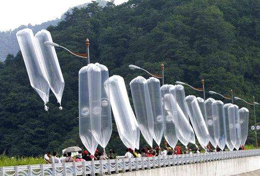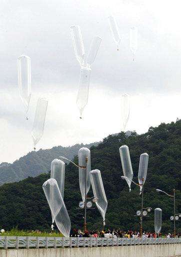 SEOUL, South Korea (AP) - Some send up plastic leaflets that weigh less than a feather and flutter down from the clouds with calls for democracy or blurry cartoons ridiculing North Korea's ruler. Some send flash drives loaded with South Korean soap operas, or mini-documentaries about the vast wealth of Southern corporations, or crisp new U.S. dollar bills. One occasionally sends his empty food wrappers, stained labels showing noodles slathered in meat sauce, so Northerners can see the good life they'd find in the South.