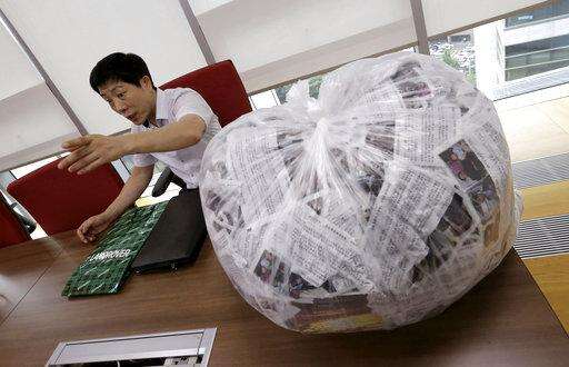 In this June 15, 2017 photo, Lee Min Bok, a North Korean who was swayed to flee his homeland when he stumbled across earlier generations of leaflets 30 years ago, hold plastic leaflets condemning North Korean government during an interview at his house in Pocheon, South Korea. In South Korea, political activists send thousands of leaflets, DVDs and flash drives every year across the border into North Korea, mostly by balloon, hoping to bring to the isolated country. Lee has spent nearly 15 years sending leaflets back into the North. “To destroy it peacefully, the influx of information is necessary.” (AP Photo/Ahn Young-joon) The Associated Press