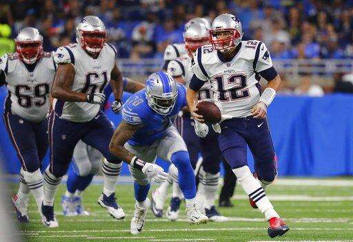 New England Patriots quarterback Tom Brady (12) scrambles during the first half of the team's NFL preseason football game against the Detroit Lions, Friday, Aug. 25, 2017, in Detroit. (AP Photo/Rick Osentoski) The Associated Press