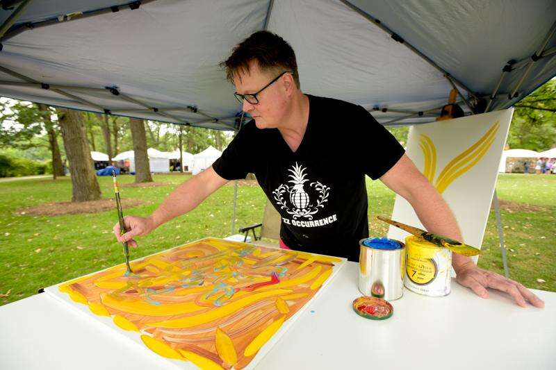 Artist Lewis Achenbach of Wheaton paint his interpretation of the music performers during Glen Ellyn Festival of the Arts at Lake Ellyn Park on August 27, 2017.