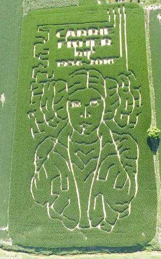 Jeremy Goebel designed the maze in February, more than a month after Fisher's late December death, and planted it this spring using a GPS device. The corn is now mature and its trails outline the "Star Wars" character's face, distinctive hairstyle and part of her upper body.