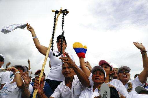 CARTAGENA, Colombia (AP) - Pope Francis wrapped up his Colombia trip Sunday by honoring a fellow Jesuit who ministered to African slaves and urging Colombians today to follow his lead in working for a more peaceful future.