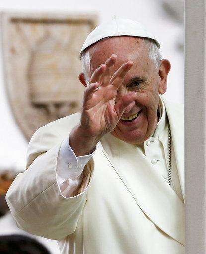 Pope Francis waves as he departs the Nunciature in Bogota, Colombia, Sunday, Sept., 10, 2017. Francis slept four nights at the Nunciature during his visit the the South American country. (AP Photo/Fernando Vergara) The Associated Press