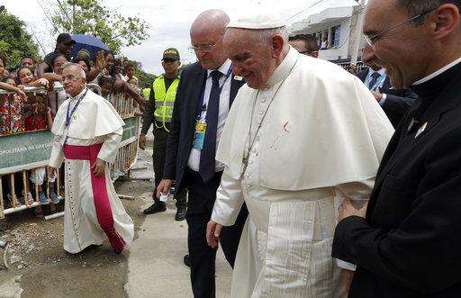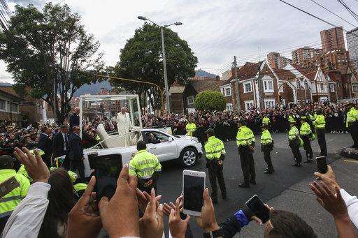 BOGOTA, Colombia (AP) - The latest on Pope Francis' visit to Colombia (all times local):