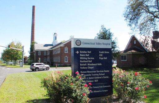 This Friday, Sept. 15, 2017 photo shows an entrance to Connecticut Valley Hospital campus in Middletown, Conn. The campus is home to the Whiting Forensic Division maximum-security psychiatric hospital, where some staff members have been suspended and several arrested in connection with allegations of misconduct and abuse. (AP Photo/Dave Collins)