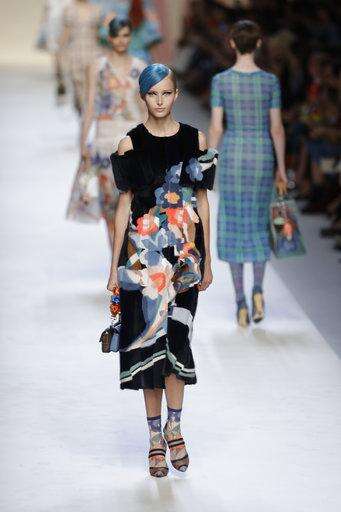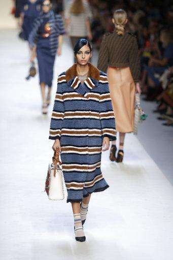 A model wears a creation as part of the Fendi womens Fall/Winter 2018/19 fashion collection, presented in Milan, Italy, Thursday, Sept. 21, 2017. (AP Photo/Luca Bruno)