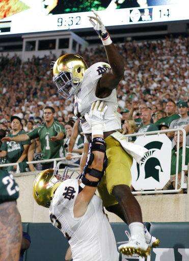 Lewerke broke free for a 52-yard run on what looked like a simple quarterback sneak on third-and-1. That set up his 4-yard touchdown pass to Darrell Stewart. But in the second quarter, Lewerke fumbled while trying to scramble out of trouble on third down, giving Notre Dame the ball at the Michigan State 24. Wimbush threw an 8-yard TD pass to Williams to make it 21-7.