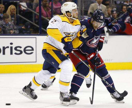 In Columbus, Ohio, Kevin Fiala scored twice to lead the Nashville Predators to a 5-3 preseason victory over the Blue Jackets.