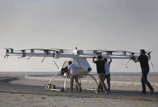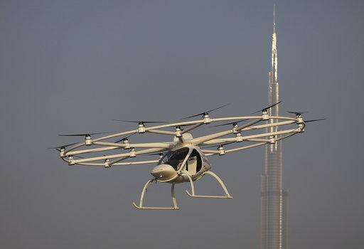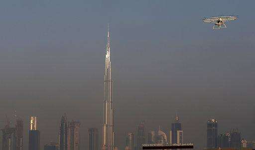 DUBAI, United Arab Emirates (AP) - With a whirling buzz from 18 rotors, the pilotless helicopter gently lifted off the ground and soared up into the afternoon sky, the spire of the world's tallest building visible behind it.