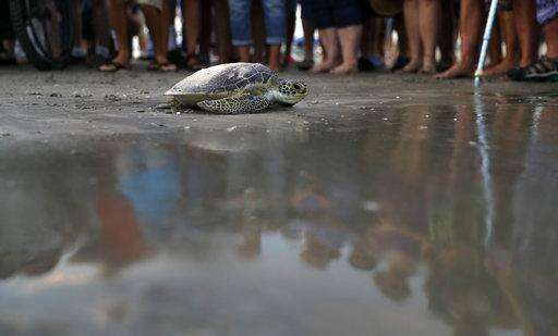 Sea turtles that had been held at the Animal Rehabilitation Keep in Port Aransas, Texas, are held at the Sea Life Center, Saturday, Sept. 30, 2017, in Corpus Christi, Texas. About 30 sea turtles were transferred after Hurricane Harvey destroyed the facility in Port Aransas. (AP Photo/Eric Gay) The Associated Press