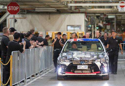 In this photo provided by Toyota Australia the last Toyota car produced in Australia leaves the line in Melbourne, Tuesday, Oct. 3, 2017. Toyota closed its manufacturing plant in Melbourne, ending 54 years of production by the Japanese firm in Australia, the first country outside of Japan where the company made cars. (Toyota Australia via AP) The Associated Press