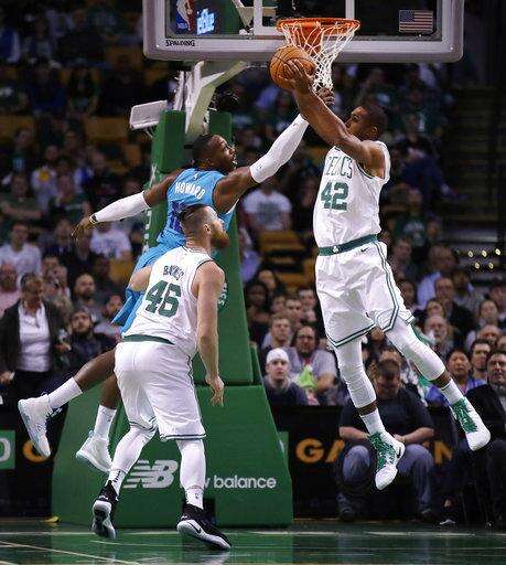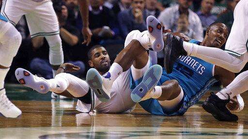 Offseason trade acquisition Kyrie Irving had nine points, four rebounds and three assists, and free agent pickup Gordon Hayward added five points and five rebounds as the Boston Celtics beat the Charlotte Hornets 94-82 Monday night in the preseason opener for both teams.