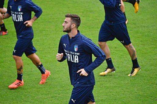Italy's Bryan Cristante warms up during a training session ahead of Friday's World Cup group G qualifying soccer match against Macedonia, at the Coverciano training center, near Florence, Italy, Tuesday, Oct. 3, 2017. (Maurizio Degl'Innocenti/ANSA via AP) The Associated Press