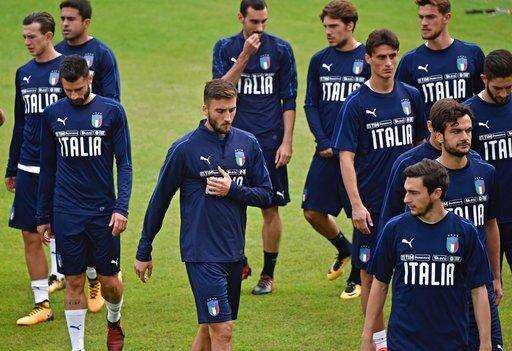 Italy players attend a training session ahead of Friday's World Cup group G qualifying soccer match against Macedonia, at the Coverciano training center, near Florence, Italy, Tuesday, Oct. 3, 2017. (Maurizio Degl'Innocenti/ANSA via AP) The Associated Press