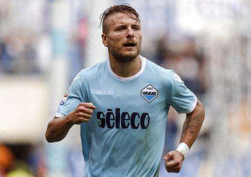 Lazio's Ciro Immobile celebrates after scoring during the Serie A soccer match between Sassuolo and Lazio at the Olympic stadium in Rome, Sunday, Oct. 1, 2017. (Angelo Carconi/ANSA via AP) The Associated Press