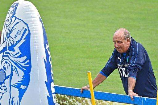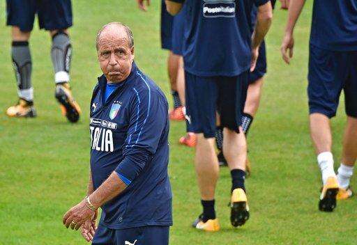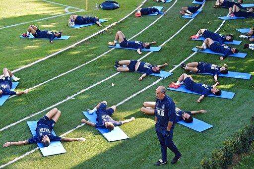 Italy coach Gian Piero Ventura leads a training session ahead of Friday's World Cup group G qualifying soccer match against Macedonia, at the Coverciano training center, near Florence, Italy, Tuesday, Oct. 3, 2017. (Maurizio Degl'Innocenti/ANSA via AP) The Associated Press