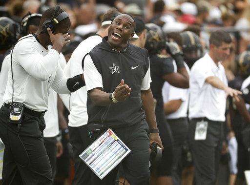 Vanderbilt head coach Derek Mason yells to his players in the first half of an NCAA college football game against Georgia Saturday, Oct. 7, 2017, in Nashville, Tenn. (AP Photo/Mark Humphrey) The Associated Press