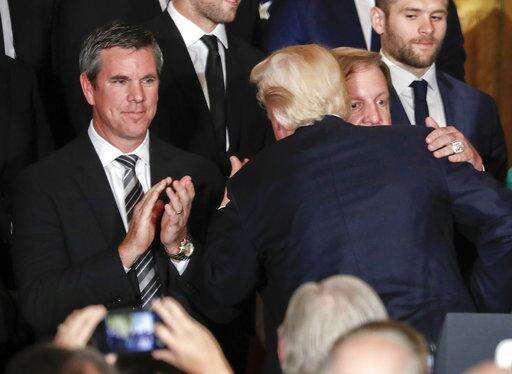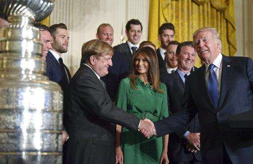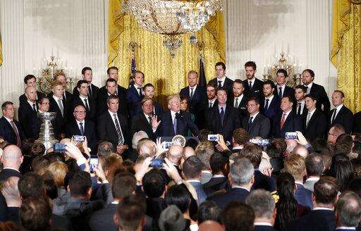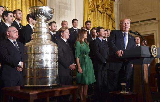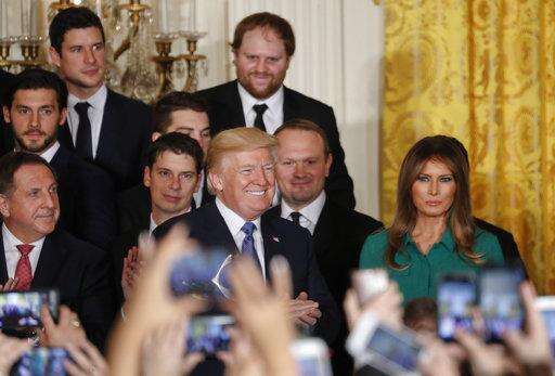 WASHINGTON (AP) - After adding to the uproar over NFL players who protest during the national anthem, President Donald Trump mostly stuck to hockey in honoring the Stanley Cup-winning Pittsburgh Penguins on Tuesday, calling them "true champions and incredible patriots."