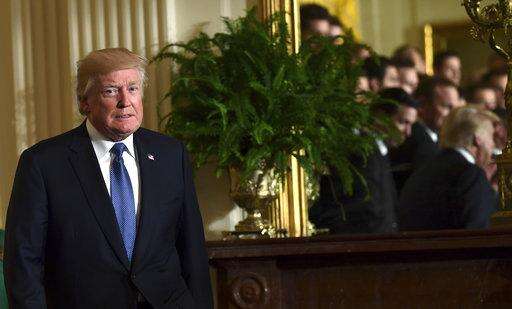 President Donald Trump speaks during a ceremony to honor the 2017 NHL Stanley Cup Champion Pittsburgh Penguins, Tuesday Oct. 10, 2017, in the East Room of the White House in Washington. (AP Photo/Susan Walsh) The Associated Press