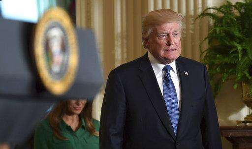 President Donald Trump, followed by first lady Melania Trump arrives for a ceremony to honor the 2017 NHL Stanley Cup Champion Pittsburgh Penguins, Tuesday, Oct. 10, 2017, in the East Room of the White House in Washington. (AP Photo/Susan Walsh) The Associated Press