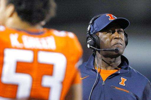 FILE - In this Sept. 29, 2017, file photo, Illinois coach Lovie Smith watches from the sideline during the second half of an NCAA college football game against Nebraska in Champaign, Ill. Few teams in college football are as young and experienced as Illinois. Coach Smith’s squad has started 13 true freshmen, more than any other team in the country. (AP Photo/Stephen Haas, File) The Associated Press