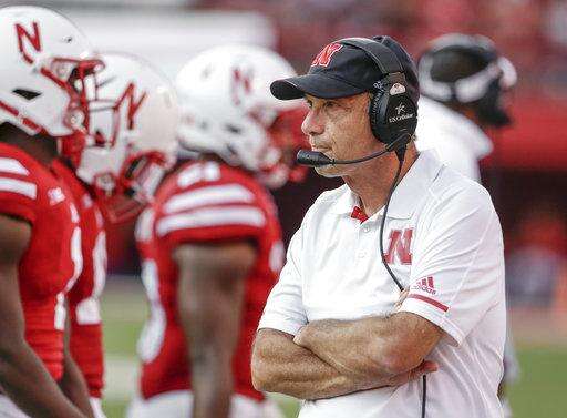 FILE - In this Sept. 23, 2017, file photo, Nebraska head coach Mike Riley follows the second half of an NCAA college football game against Rutgers in Lincoln, Neb. The spotlight game in the Big Ten this week is once again in Lincoln, where Ohio State faces the downtrodden Cornhuskers. (AP Photo/Nati Harnik, File) The Associated Press