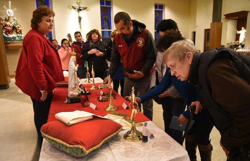 Worshippers gathered Wednesday at Our Lady of Guadalupe Shrine in Des Plaines to see the blood, hair and personal rosary of the late Pope St. John Paul II.