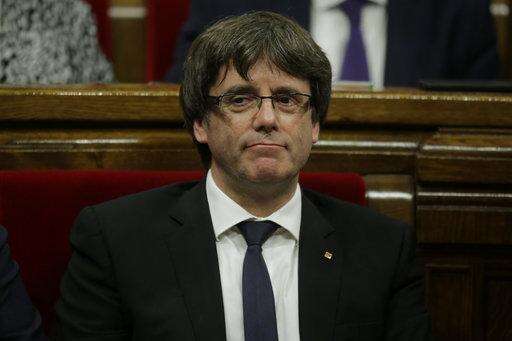 Catalan regional President Carles Puigdemont waits to make his opening speech at the parliament in Barcelona, Spain, Tuesday, Oct. 10, 2017. Puigdemont says he has a mandate to declare independence for the northeastern region, but proposes waiting "a few weeks" in order to facilitate a dialogue. (AP Photo/Manu Fernandez) The Associated Press