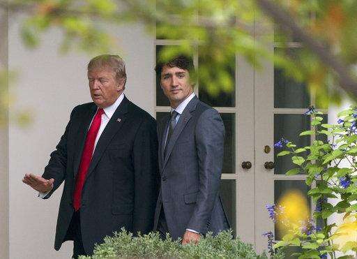 WASHINGTON (AP) - President Donald Trump remained non-committal about the future of the North American Free Trade Agreement on Wednesday as he welcomed Canadian Prime Minister Justin Trudeau to the White House amid simmering disputes over trade between the two North American neighbors.