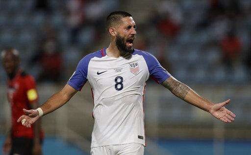 United States' Clint Dempsey reacts during a 2018 World Cup qualifying soccer match against Trinidad and Tobago in Couva, Trinidad, Tuesday, Oct. 10, 2017. (AP Photo/Rebecca Blackwell) The Associated Press