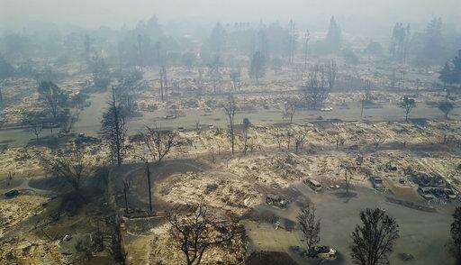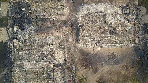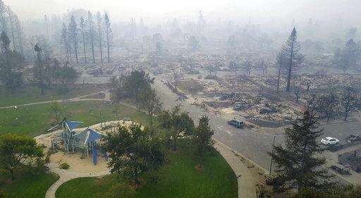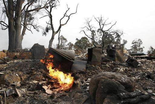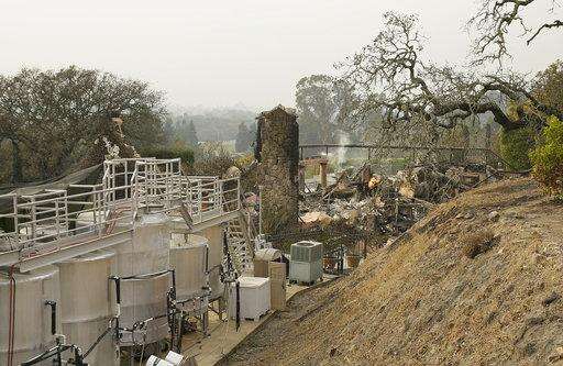 SANTA ROSA, Calif. (AP) - The flames that raced across California wine country left little more than smoldering ashes and eye-stinging smoke in their wake. House after house is gone, with only brick chimneys and charred laundry machines to mark sites that were once family homes.