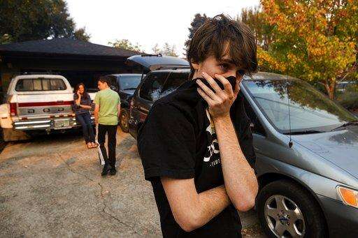 CORRECTS TO STAY INSTEAD OF ARE AT HOME Mason Heyman, 18, and his family stay after a mandatory evacuation order issued on Wednesday, Oct. 11, 2017, in Calistoga, Calif. Three days after the fires began, firefighters were still unable to gain control of the blazes that had turned entire Northern California neighborhoods to ash and destroyed thousands of homes and businesses. (Paul Kitagaki Jr./The Sacramento Bee via AP)