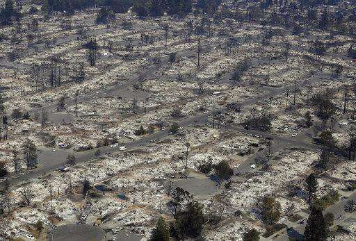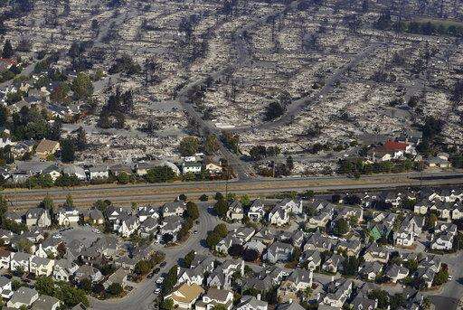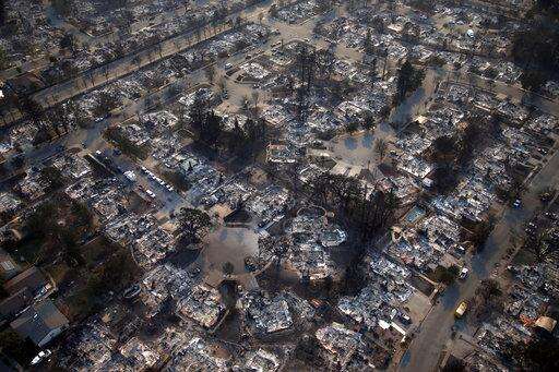 Homes destroyed from fires are seen from an aerial view in Santa Rosa, Calif., Wednesday, Oct. 11, 2017. (AP Photo/Jeff Chiu)