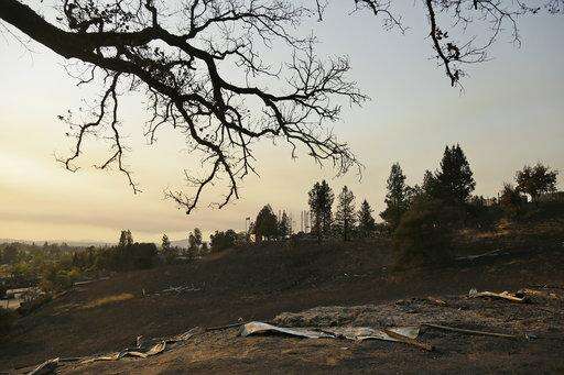Burned out homes are seen Wednesday, Oct. 11, 2017, in Santa Rosa, Calif. Wildfires whipped by powerful winds swept through Northern California sending residents on a headlong flight to safety through smoke and flames as homes burned. (AP Photo/Jeff Chiu)