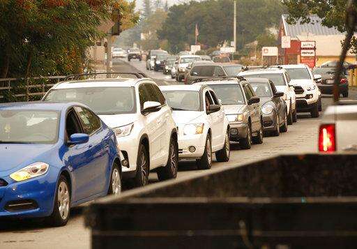Cars crowd the streets as residents evacuate Sonoma, Calif, Wednesday, Oct. 11, 2017. With fires getting near, the town was placed under a voluntary evacuation order.(AP Photo/Rich Pedroncelli)