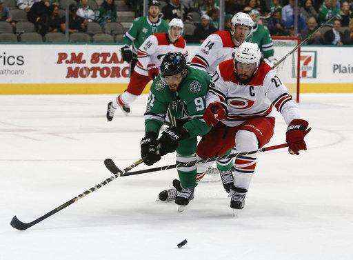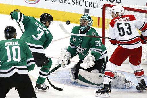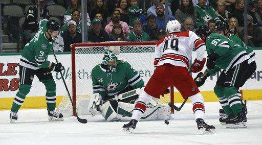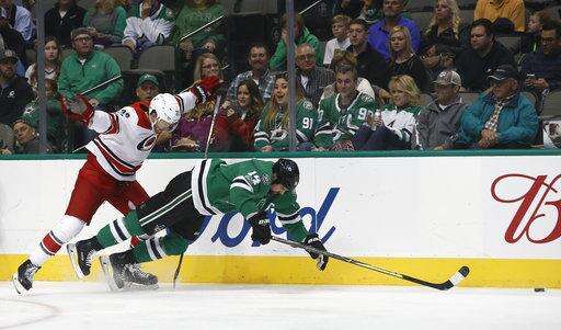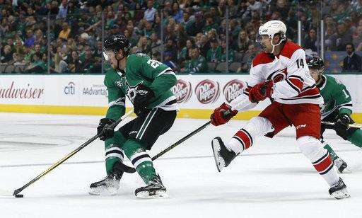 NOTES: Commemorating 25 years in the NHL, Dallas honored retired former captain Brenden Morrow. He dropped the ceremonial first puck for Stars captain Benn and Carolina rookie Haydn Fleury. When Fleury was a boy, Morrow babysat for him in their hometown of Carlyle, Saskatchewan. ... Pitlick has 13 goals in 66 games over four seasons. ... Dallas was outshot for only the second time this season, 39-26.