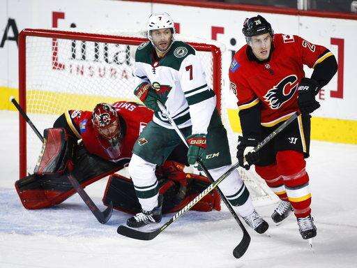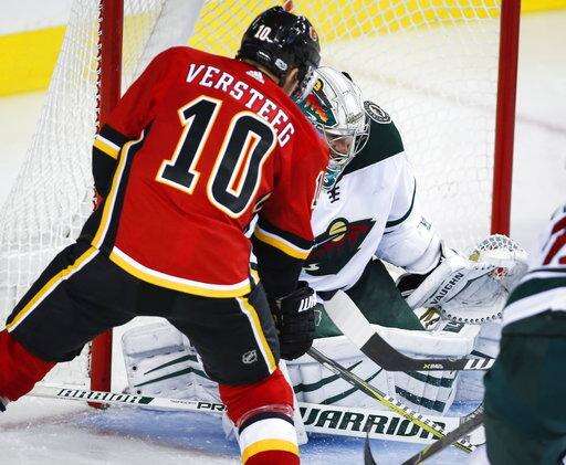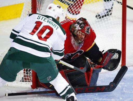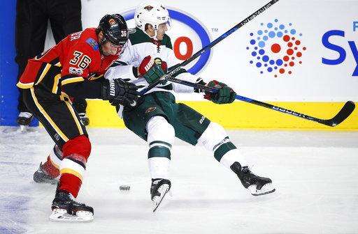 NOTES: Flames D Brett Kulak made his season debut after sitting the first seven games. C Freddie Hamilton also played for just the second time. Veteran C Matt Stajan was among Calgary's healthy scratches. ... Minnesota C Landon Ferraro (hip flexor) did not play after being injured on Friday in Winnipeg. Called up from Iowa (AHL) to take his place was Cal O'Reilly. Sent down to create room on the roster was D Mike Reilly.