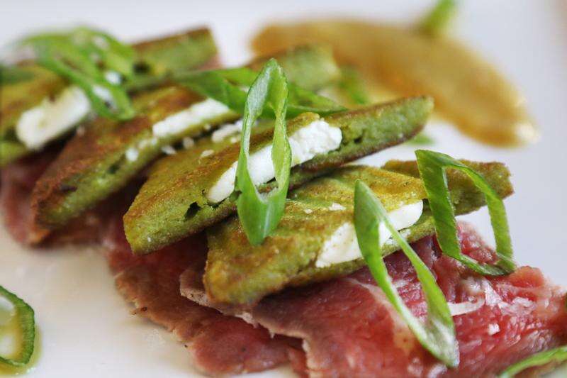 Joe Wachter's Chèvre-stuffed Shan Tofu with Beef Carpaccio and Artichoke Sauce