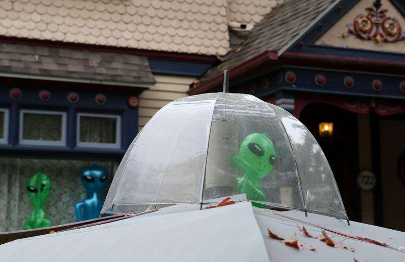 Brian Piñon and his wife Christen Harvey transformed their 2,000-square-foot garage - originally a carriage house - into a Haunted House on Douglas, which will have an "alien extravaganza" theme for Halloween.