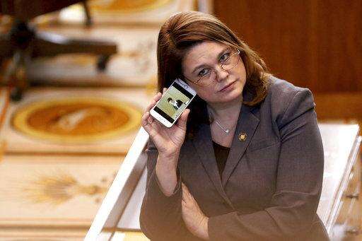 FILE - In this March 3, 2016, file photo, Oregon state Sen. Sara Gelser, D-Corvallis, listens to a live stream as members of the House of Representatives finish business before adjourning the 2016 legislative session at the Oregon State Capitol in Salem, Ore. Democratic Sen. Gelser, who accused Republican Sen. Jeff Kruse of inappropriate touching, said Monday, Oct. 23, 2017, she heard accounts from other women in the Oregon State Capitol of such behavior by men. (Anna Reed/Statesman-Journal via AP, File) The Associated Press