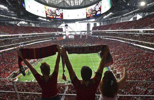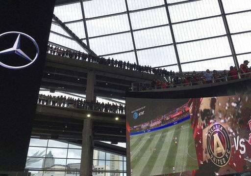 In this Oct. 22, 2017 photo, a record crowd of 71,874 packs Mercedes-Benz Stadium for Atlanta United's regular-season finale against Toronto FC, in Atlanta. United also set a Major League Soccer season record by averaging 48,200 per game in their inaugural year. in Atlanta. (AP Photo/Paul Newberry) The Associated Press